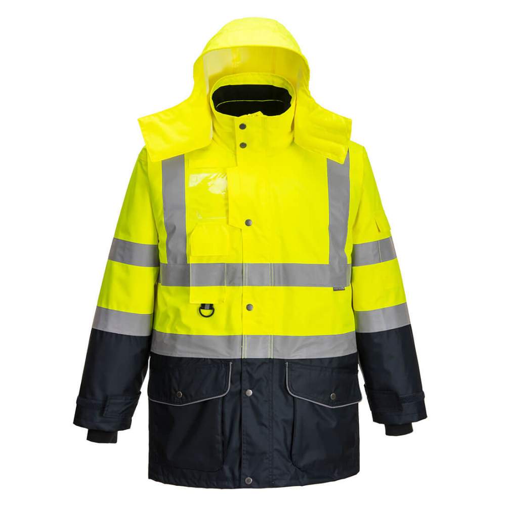 A highly innovative and functional jacket that offers seven wearer combinations. This versatile jacket is highly adaptable to all weather conditions and is certified to the highest in waterproof and breathable standards. Features include fleece lined collar for optimum warmth and comfort, radio loop, D-ring, ID holder, multiple pockets for ample storage, reflective piping, detachable hood for easy storing and print access for corporate branding.